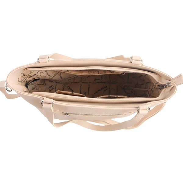 Cartera Oreiro Love 28200 Color: Negro, Camel y Hueso. Medidas: 28 cm de alto x 28 cm de ancho x 9 cm de profundidad. Material: 100% Poliuretano. Incluye Packaging