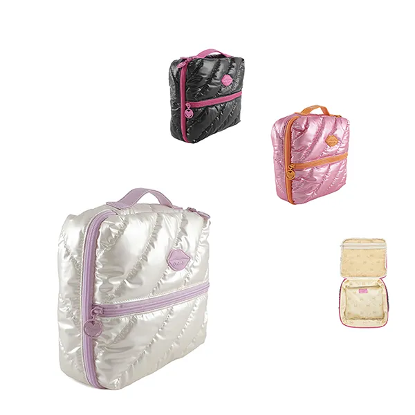 -Contiene: Un bolsillo principal, un bolsillo interno con cierre, dos bolsillos internos organizadores, un bolsillo posterior, una tira y dos asas de transporte.