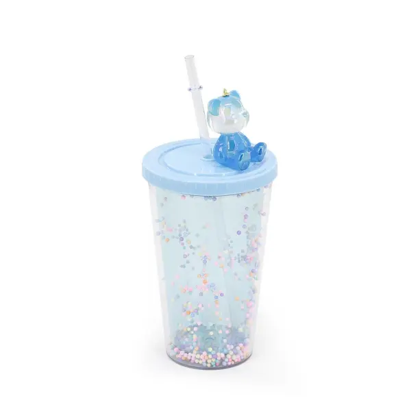 -Composición: Vaso doble capa 100% de poliestireno. Tapa 100% de poliestireno. Sorbete 100% de acrilonitrilo-estireno. Burlete 100% de silicona.
